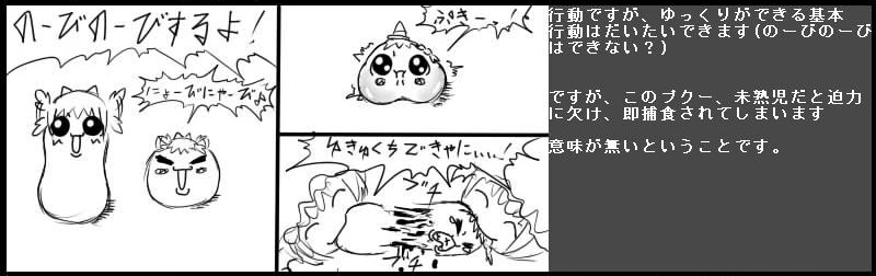 - 威嚇というプクーすることもできるが、未熟児だと迫力に欠け、即捕食されてしまう。