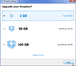 (それ以外は有料のサービスです。50GBは9.99USドル/月、100GBは19.99USドル/月)
