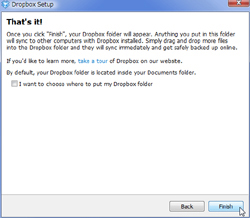 インストールが完了すると、デスクトップにDropboxというショートカットができています。