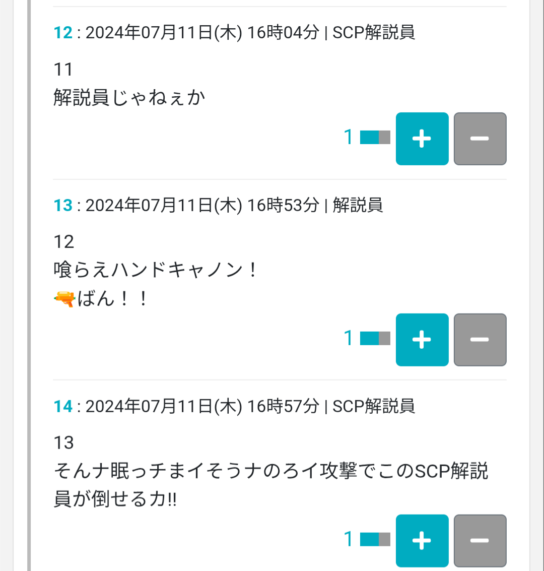 とコメントし、その後SCP解説員というユーザーが解説員に話しかけたところ