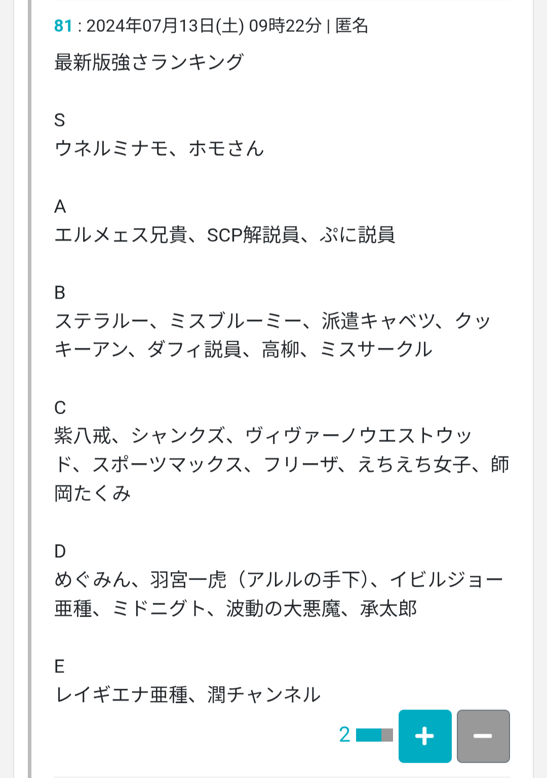 2024年7月11日に投稿された、YouTuber世論調査上のコラム。分類はアンケート。リクエスト者は野獣先輩(雑談民)。