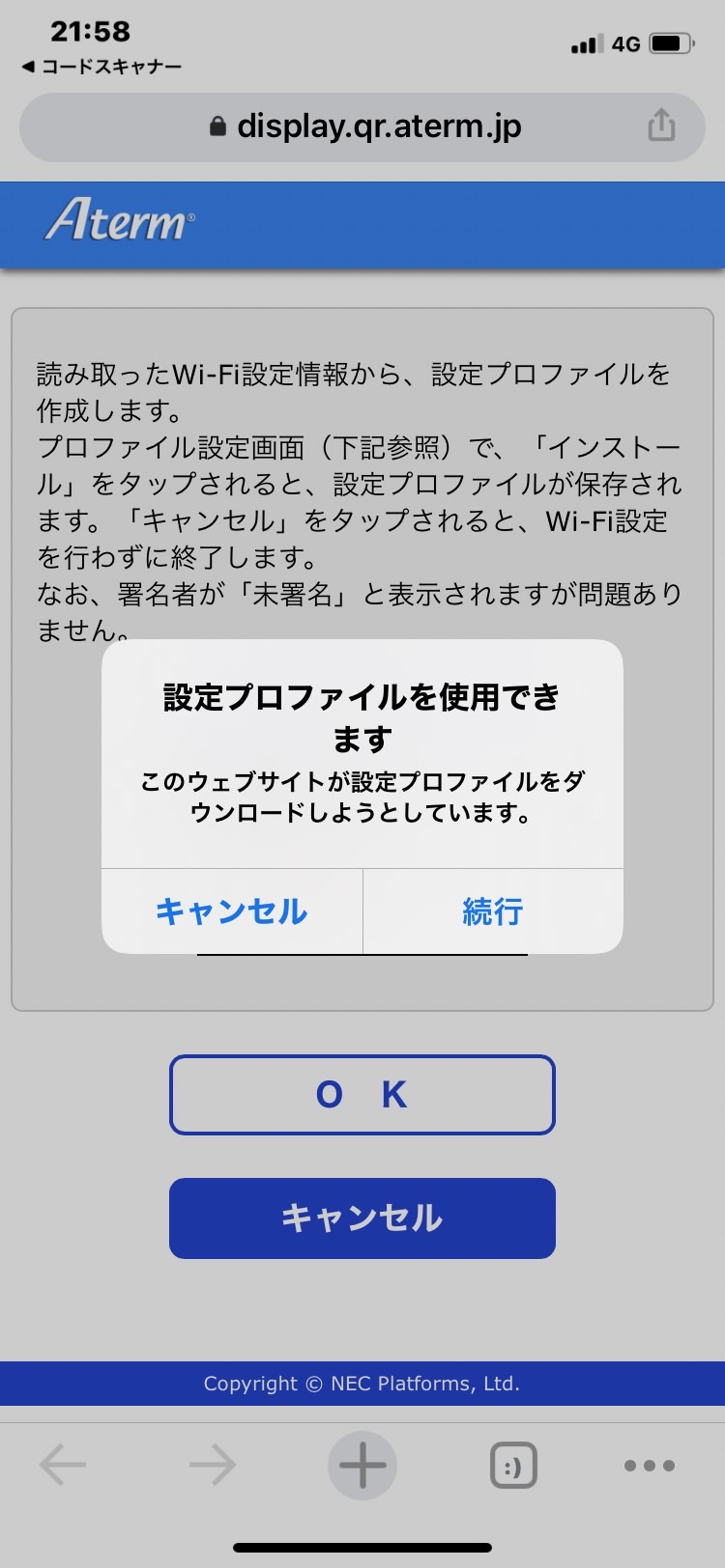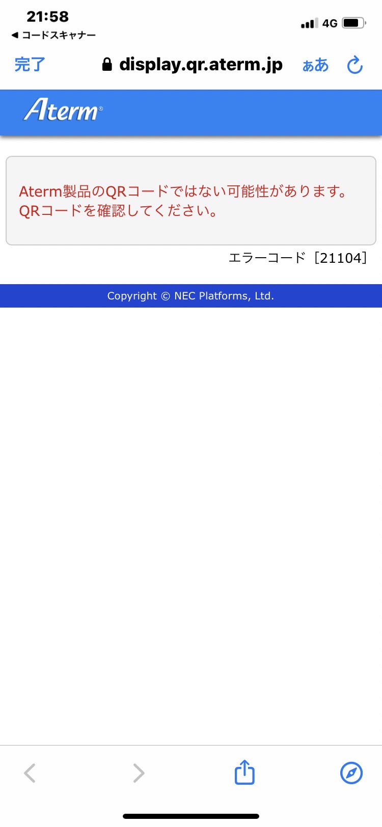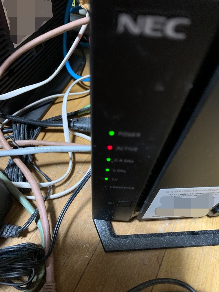 ここが赤いランプ点灯のままの場合、NECへ電話してください、再設定です