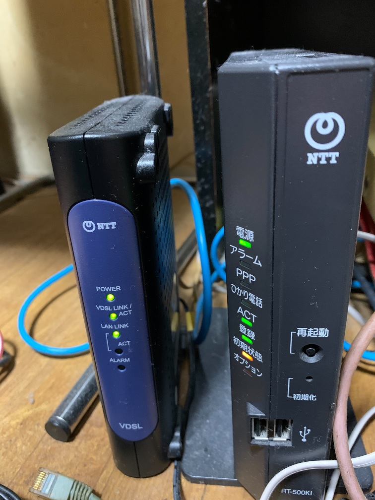 NTTの工事が終わった後、この上から2番目ACTIVEランプが緑点灯になればすべて治ったということになります