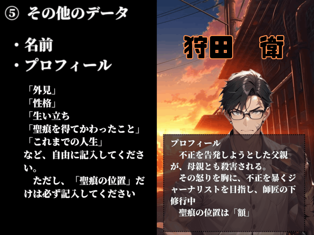 ただし、「聖痕の位置」だけは必ず記入してください。