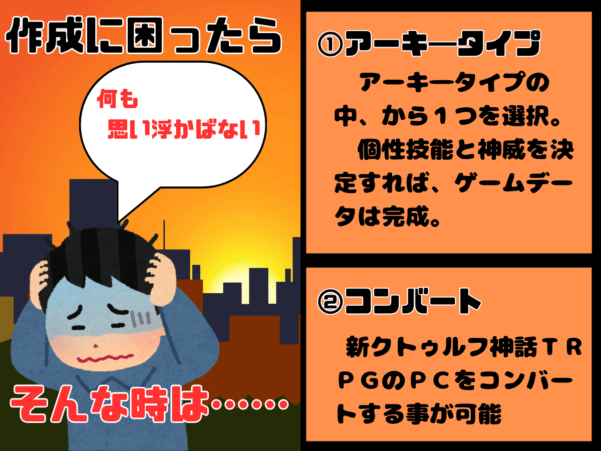 クトゥルフ神話TRPGのPCをコンバートして、あなたとして利用する事ができます。