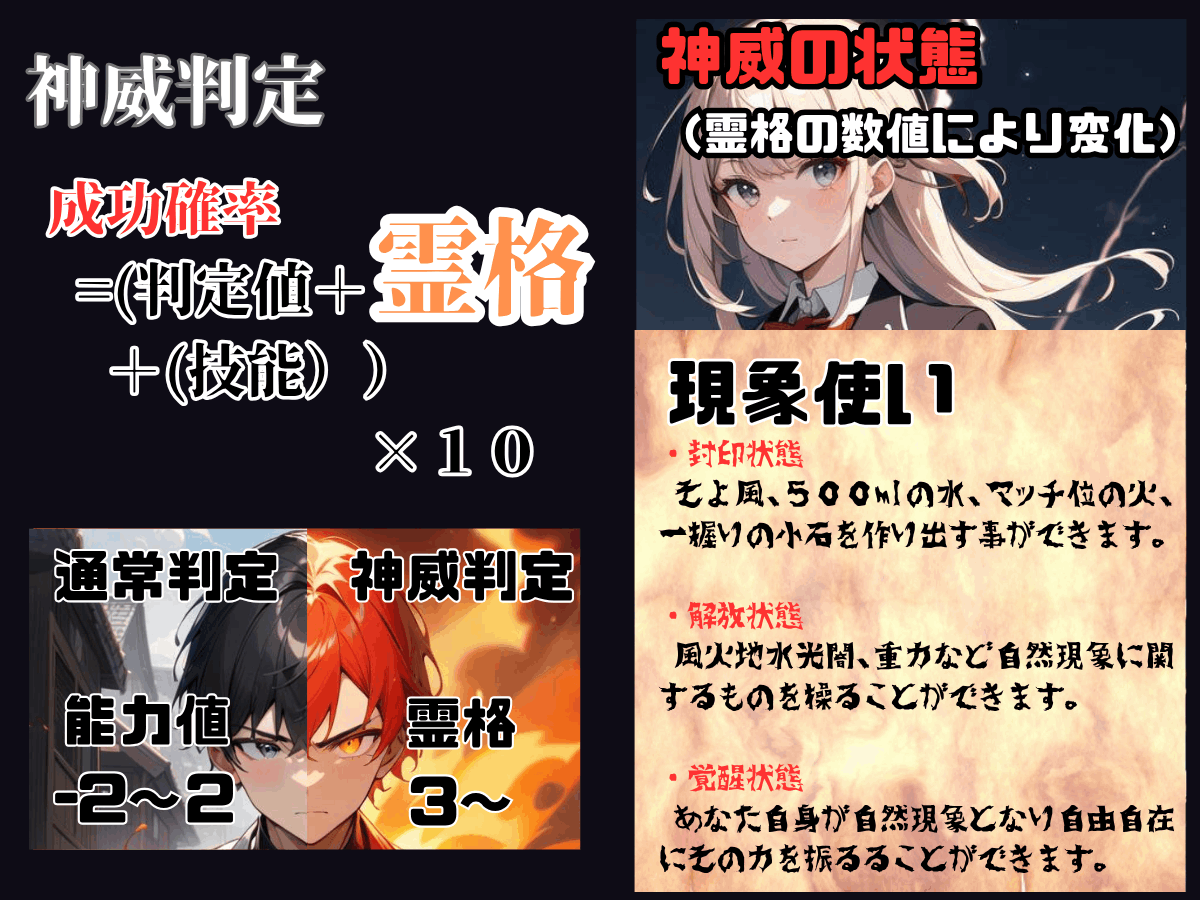あなたが使用できる異能「神威」による判定「神威判定」について説明します。