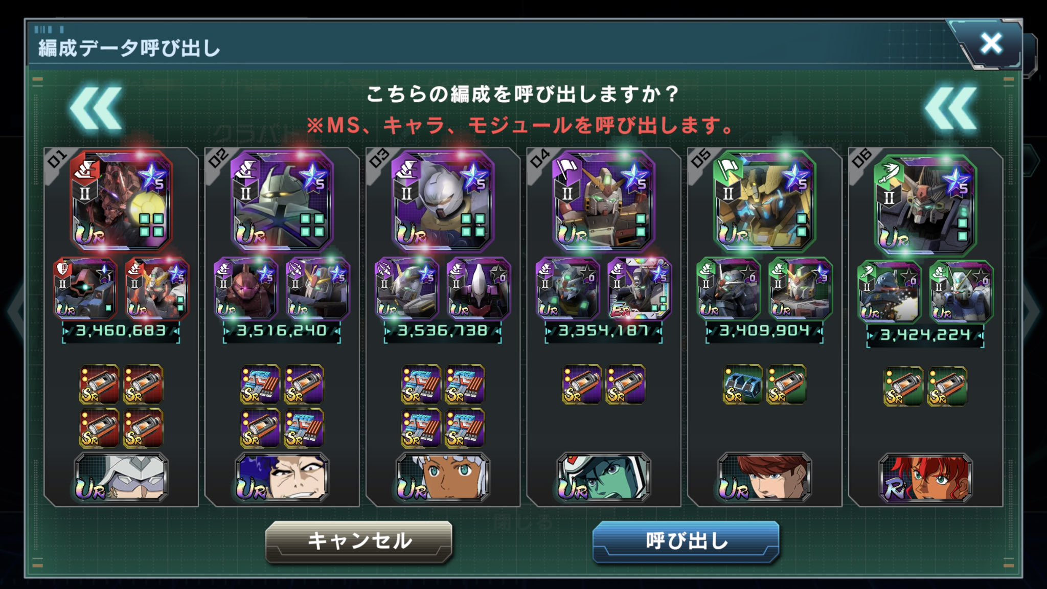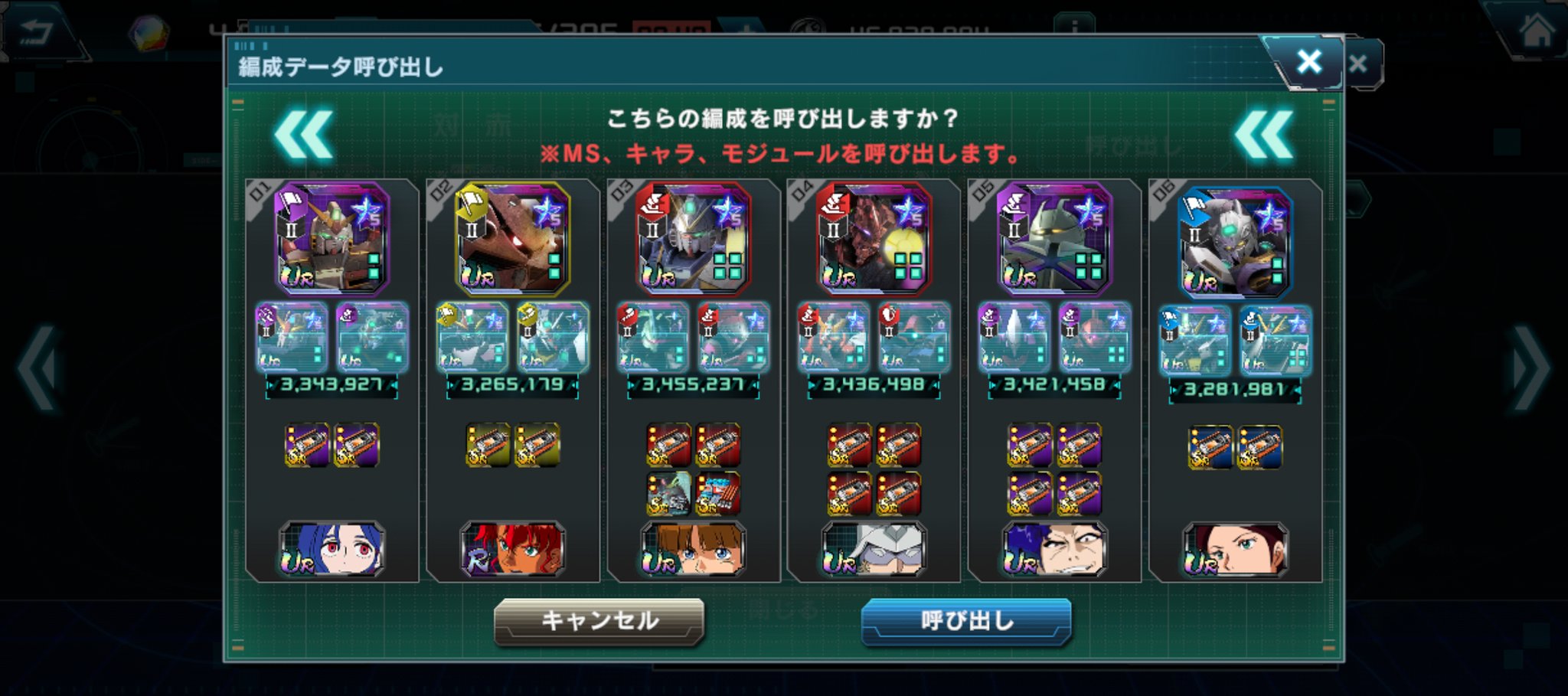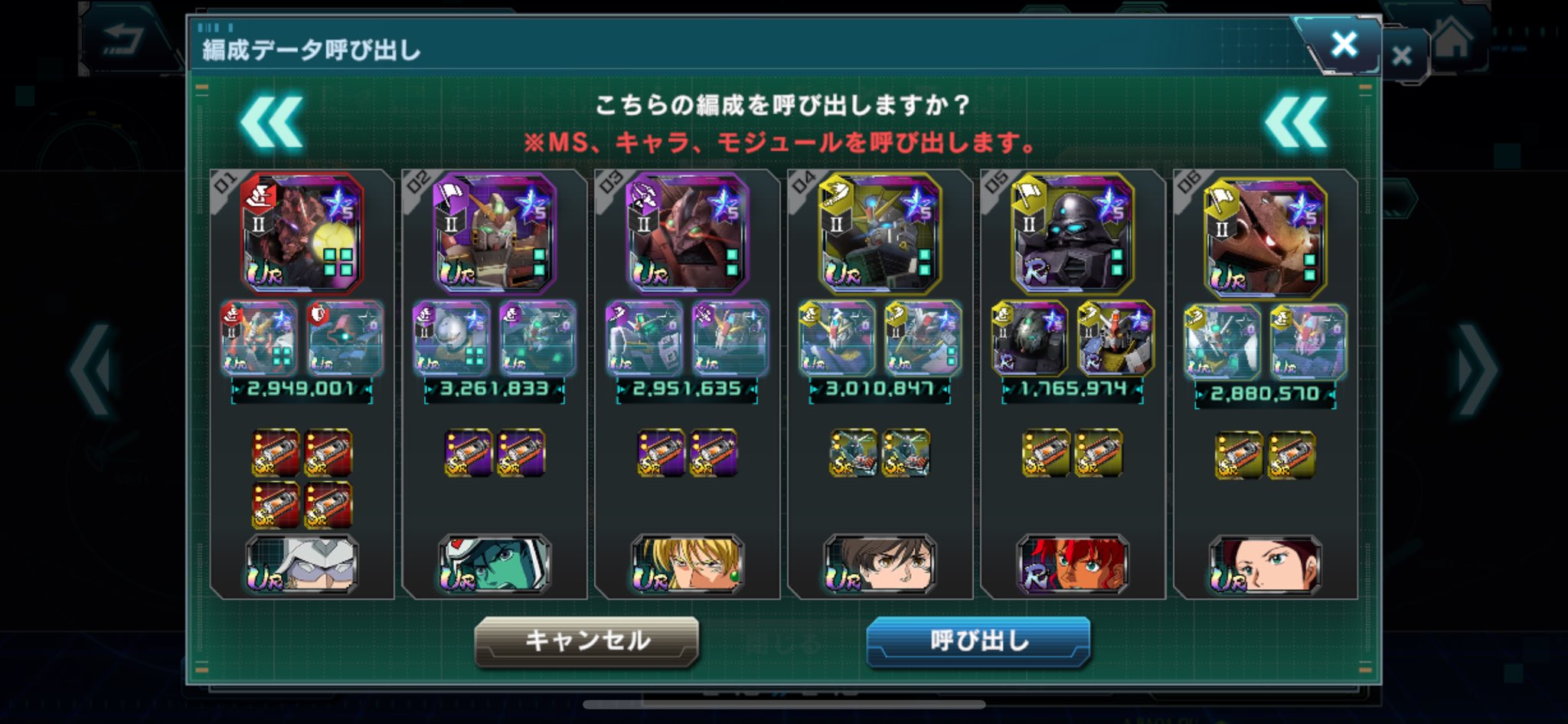 ∀ガンダム | 黄 | 汎用 | 30000000000 | 戦闘開始から実弾被ダメージ、ビーム被ダメージ減少、戦闘開始から20秒毎に味方全機にスキル被ダメージ減少 |