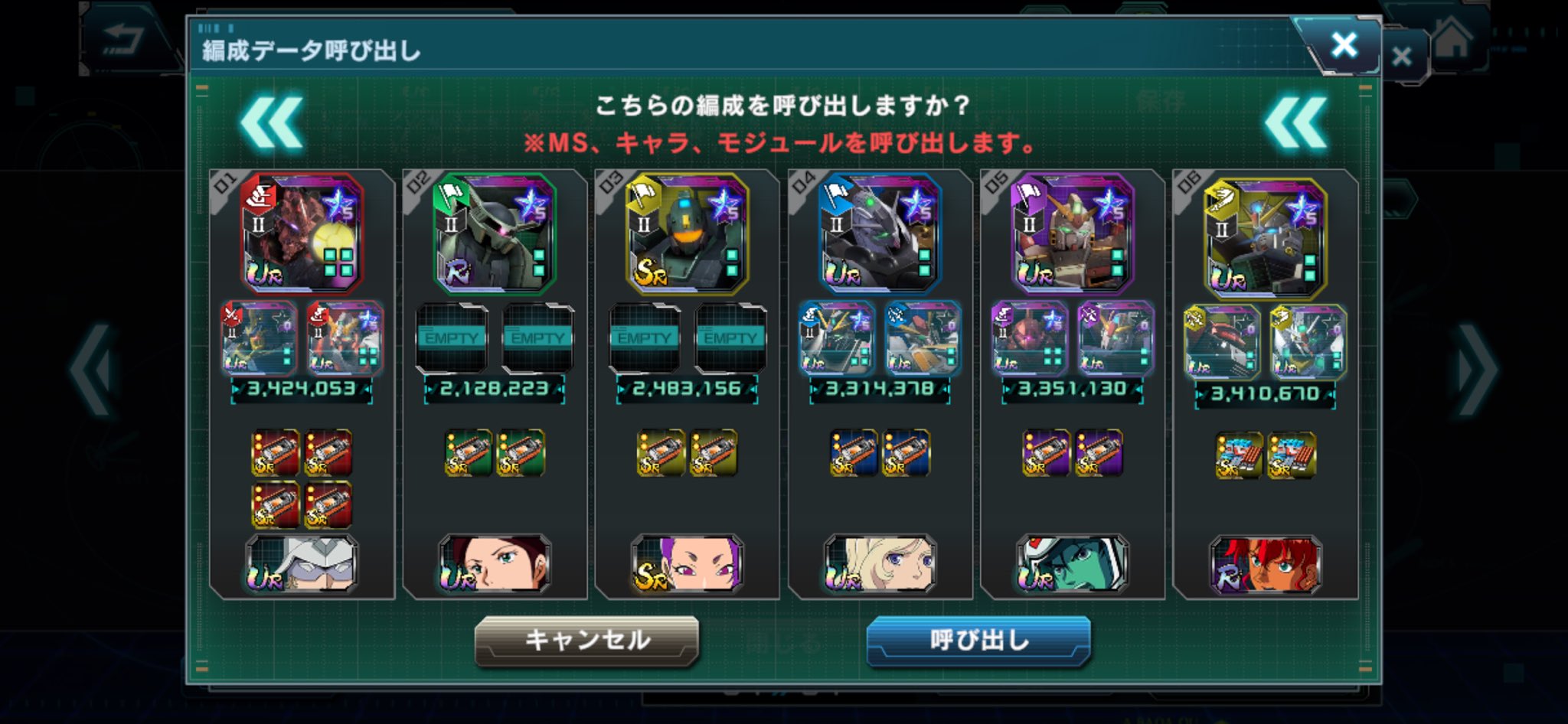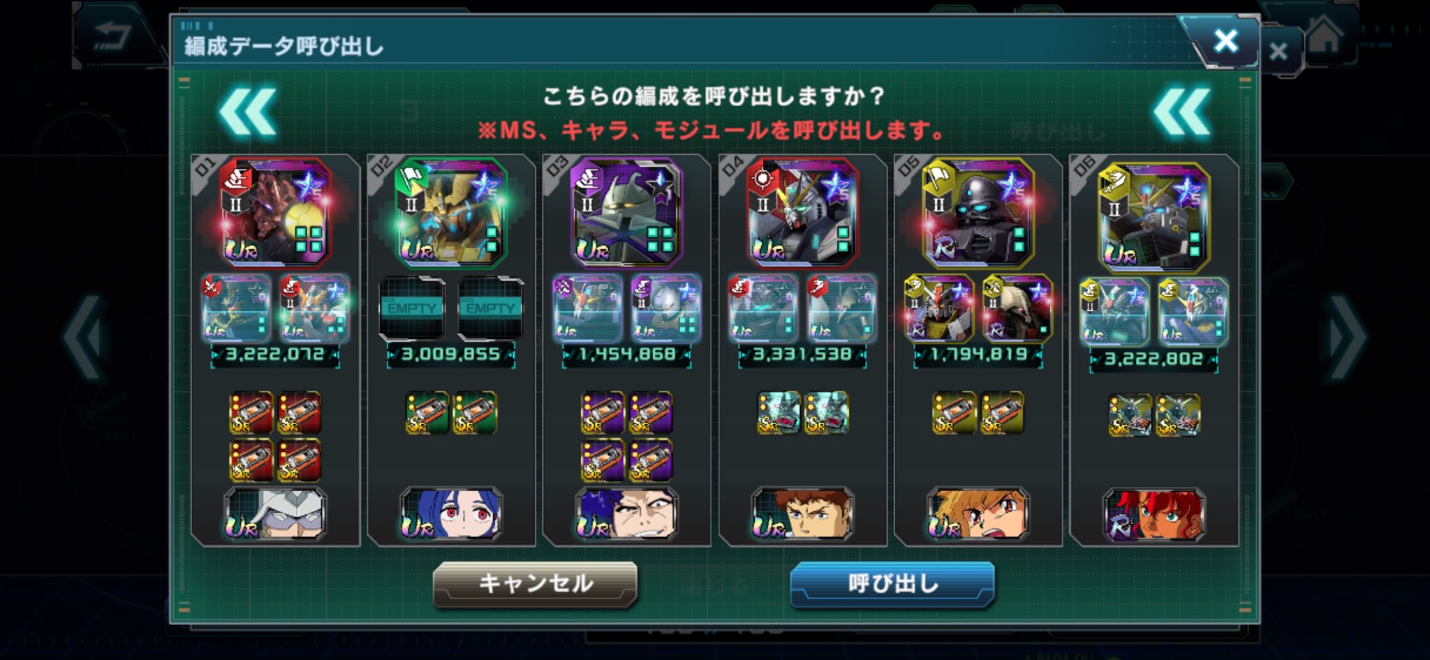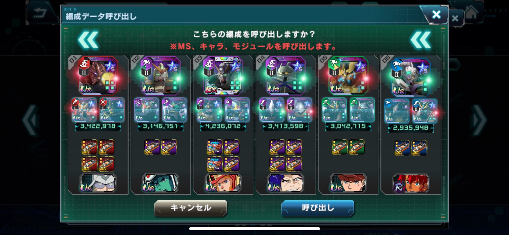 ∀ガンダム | 黄 | 汎用 | 30000000000 | 戦闘開始から実弾被ダメージ、ビーム被ダメージ減少、戦闘開始から20秒毎に味方全機にスキル被ダメージ減少 |