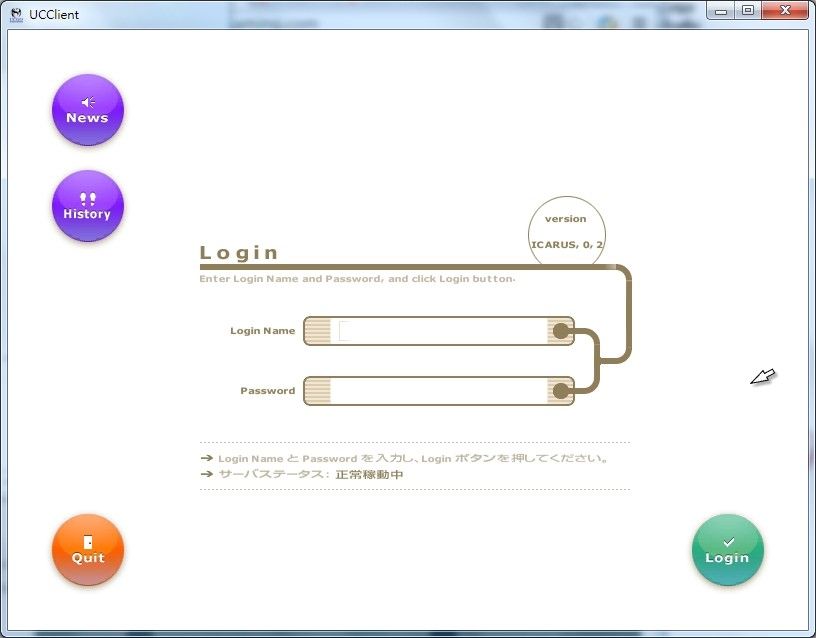 アカウント登録方法は至ってシンプルです。 クライアントのログイン画面で、最初に打ち込まれたログインネームとパスワードがそのまま登録されます。 個人情報やメールアドレスをどこかに登録する必要は一切ありません。