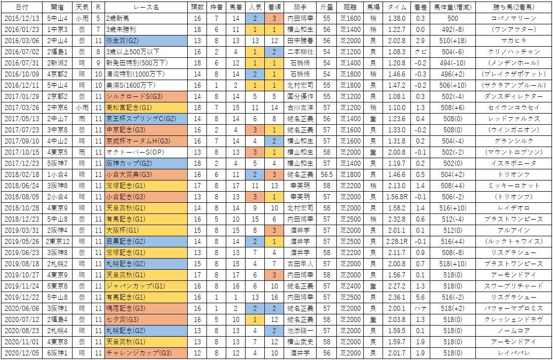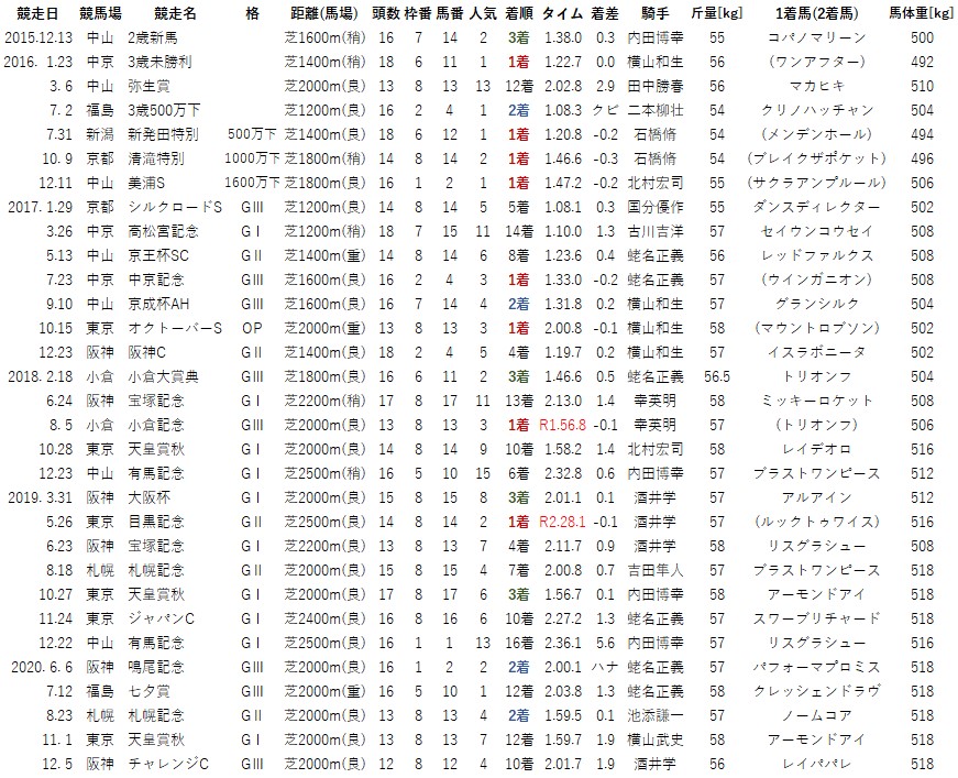 主な勝ち鞍は2017年の中京記念、2018年の小倉記念、2019年の目黒記念。