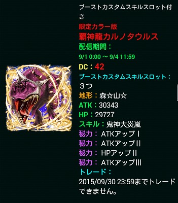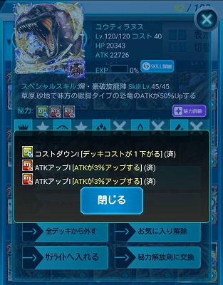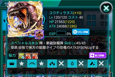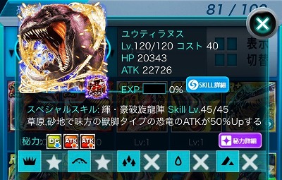注意:限定カラーのユウティラヌスは秘力を開放するとDC41からDC40にコストダウンします
