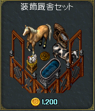 つなぎ柱 | 200 | Animal Trainerと同じくペット厩舎機能を持ちます。ロックダウン時のみ使用でき、アクセスレベルの設定が可能です。引き出す時にチャージを消費しますが、預ける場合はチャージを消費しません。チャージ数は30回ですが細工スキルで作成できるつなぎ縄(Hitching Rope)を1個使用することで、チャージ数を全て(30回)回復できます。 |