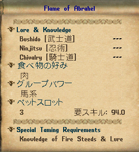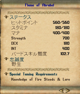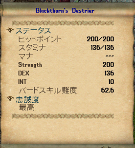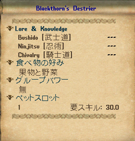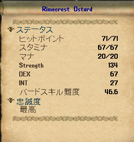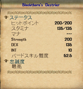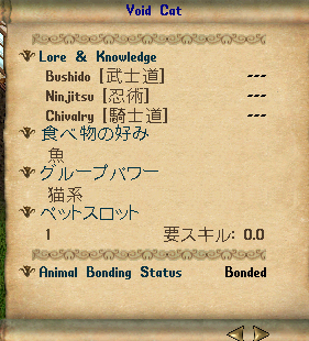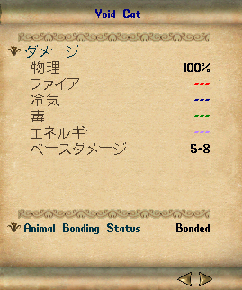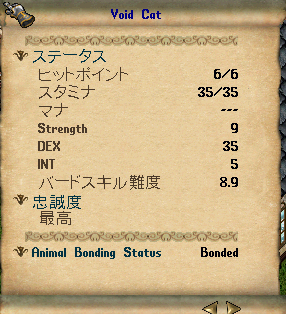 - すべてのペットは戦闘によってスキル値 100, STR/DEX/INT 125までは育つ