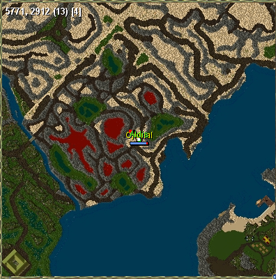 鉱山から街にはいる橋を渡って北側のL字の家のあたり