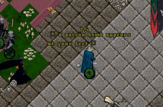 - ブラダンのミートボールのような爆弾を足下にセット、爆発