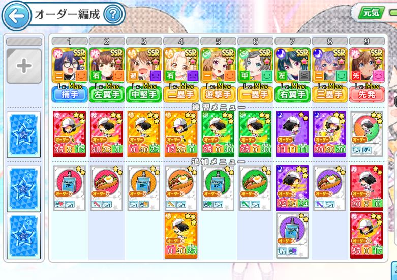 最初はおすすめ編成になっているので、ある程度はここから編成をいじります。(この先の記事は参考のため、序盤に入手できそうなキャラでデレスト編成をします)