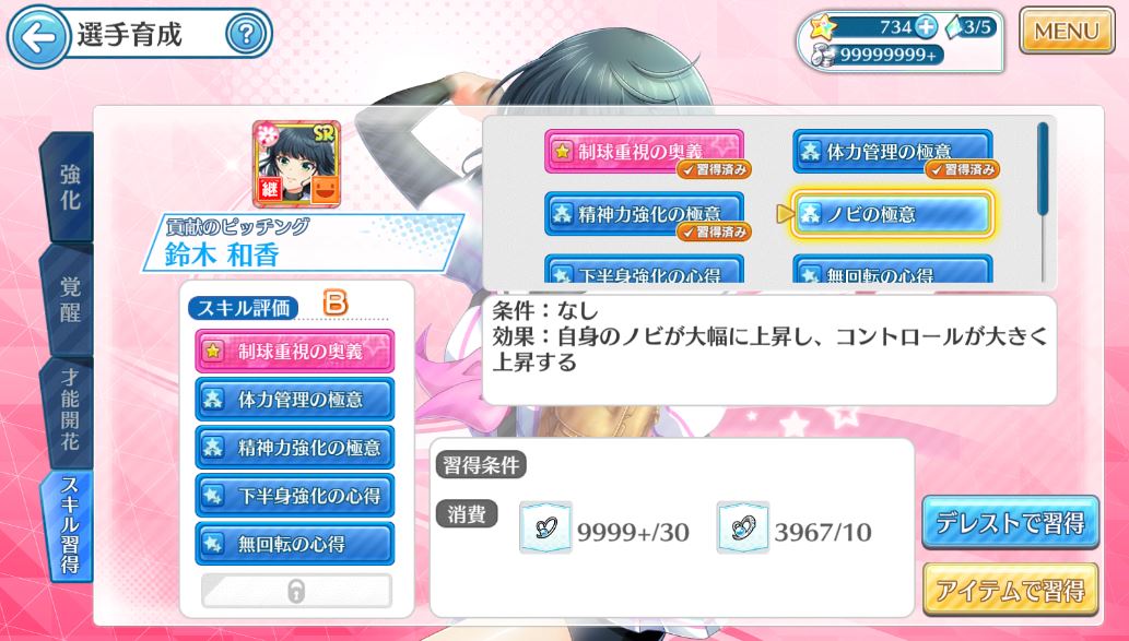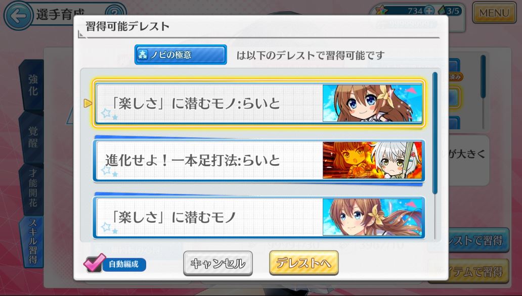 この画面から対象のデレストに行けます。(デレストから選ぶより選手から選ぶ方が、スキルを覚えたいときには便利です)