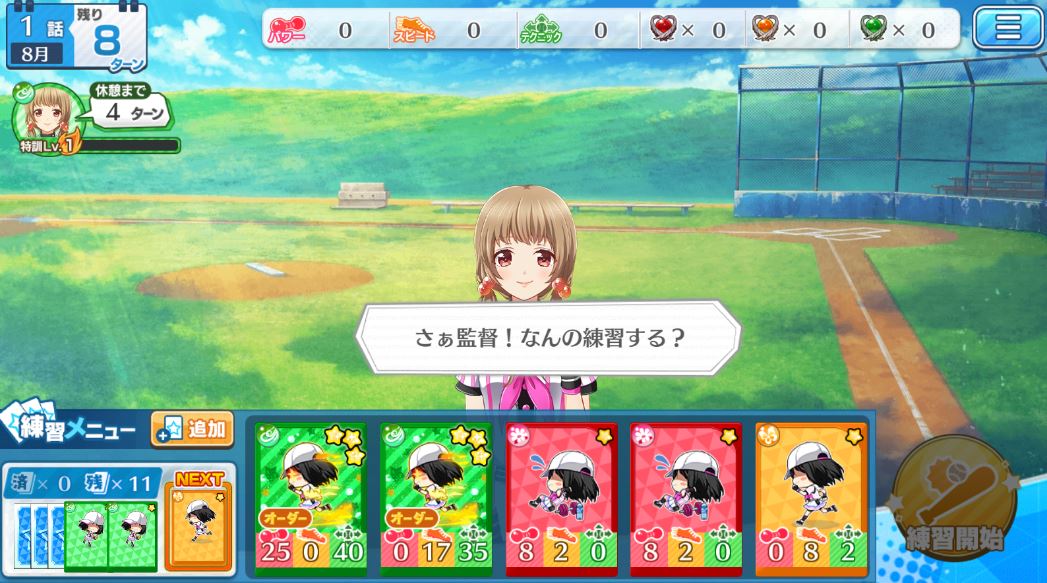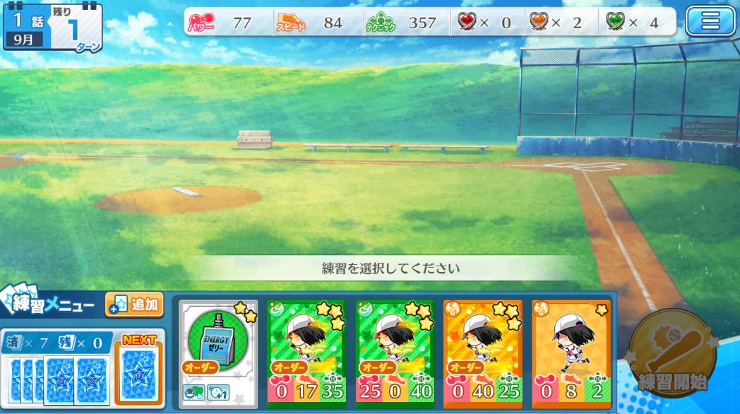 ある程度デッキのカードを使うと練習ポイントがたまってメニューの追加ができるようになります。