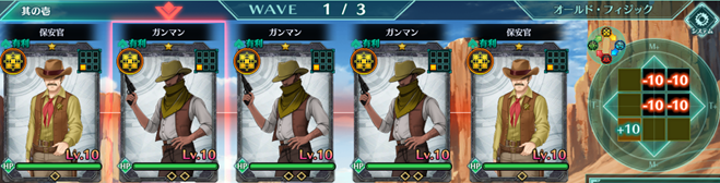 Wave1 | 保安官:黄×2、ガンマン:黄×3 |