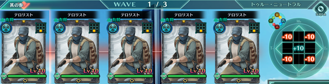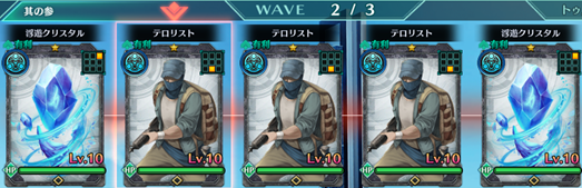 Wave2 | 浮遊クリスタル:青×2、テロリスト:青×3 |