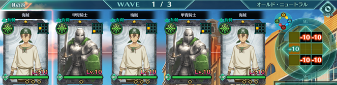 Wave1 | 海賊:緑×3、甲冑騎士:緑×2 |
