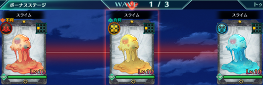 Wave1 | スライム:赤×1、スライム:黄×1、スライム:青×1 |