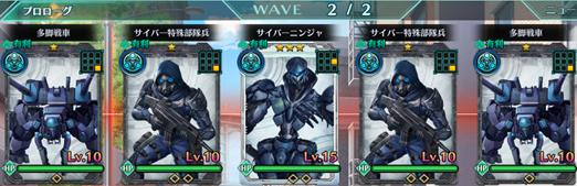 Wave2 | 多脚戦車:青×2、サイバー特殊部隊兵:青×2、サイバーニンジャ:青×1 |