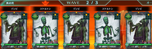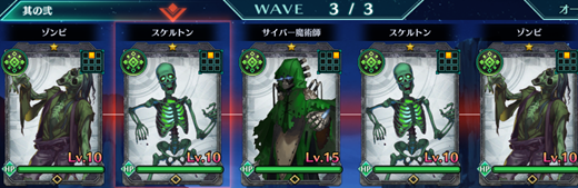Wave3 | ゾンビ:緑×2、スケルトン:緑×2、サイバー魔術師:緑×1 |