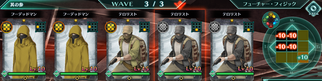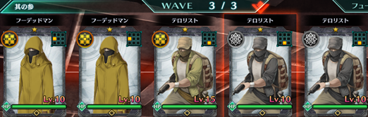 Wave3 | フーデッドマン:黄×2、テロリスト:黄×1、テロリスト:無×2 |