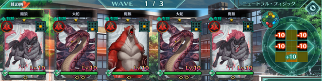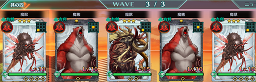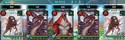 Wave1 | 魔狼:赤×2、大蛇:赤×2、魔熊:赤×1 |