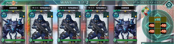Wave1 | 多脚戦車:青×2、サイバー特殊部隊兵:青×3 |