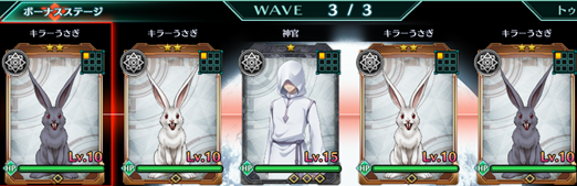 Wave3 | キラーうさぎ(黒):無×2、キラーうさぎ(白):無×2、神官:無×1 |