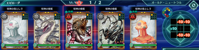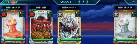 Wave2 | 海神の落とし子:赤×1、海神の副神:赤×1、海神クラーケン:無×1、海神の落とし子:無×1 |