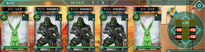 Wave1 | キラーうさぎ:緑×2、サイバー特殊部隊兵:緑×3 |