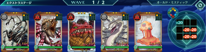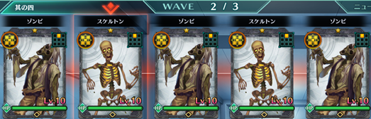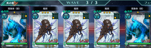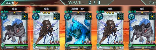 Wave2 | 魔狼:青×2、魔獣(羽虫):青×2、現象体(獣):青×1 |