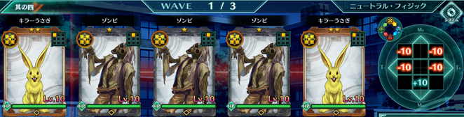 Wave1 | キラーうさぎ:黄×2、ゾンビ:黄×3 |