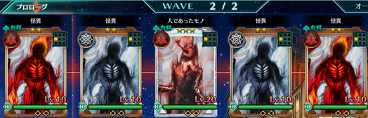 Wave2 | 怪異:赤×2、怪異:無×2、人であったモノ:赤×1 |