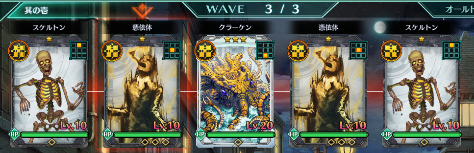 Wave3 | スケルトン:黄 x2、憑依体:黄 x2、クラーケン:黄 x1 |