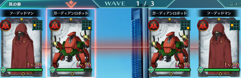 Wave1 | フーデッドマン:赤 x2、ガーディアンロボット:赤 x2 |