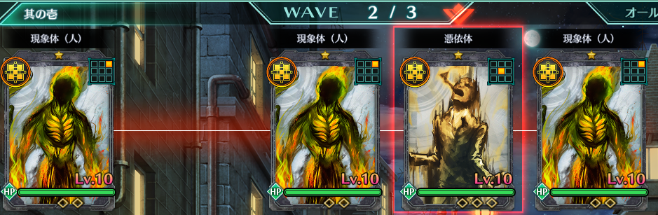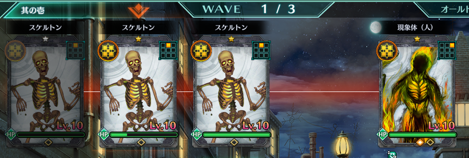 Wave1 | スケルトン:黄 x3、現象体(人):黄 x1 |