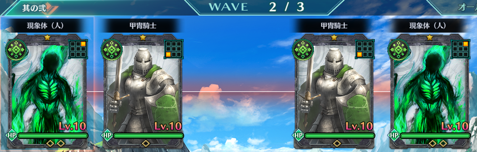 Wave2 | 甲冑騎士:緑 x2、現象体(人):緑 x2 |