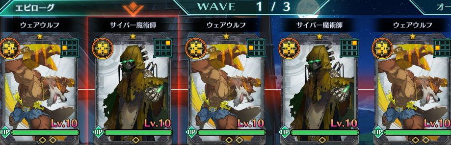 Wave1 | ウェアウルフ(強):黄 x3、サイバー魔術師:黄 x2 |