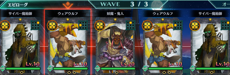 Wave3 | ウェアウルフ(強):黄 x2、サイバー魔術師:黄 x2、妖魔・鬼人:黄 x1 |