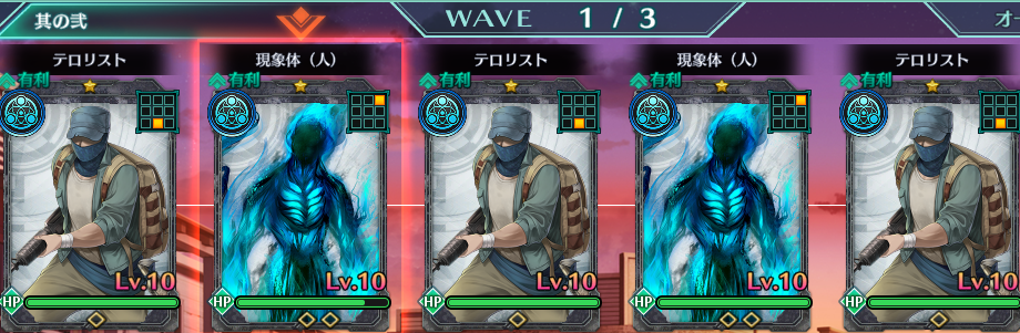Wave1 | テロリスト:青 x3、現象体(人):青 x2 |