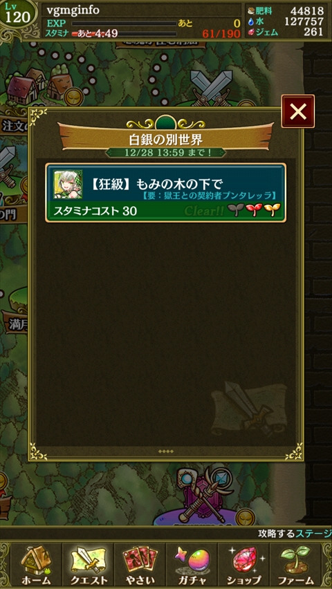 - 白銀の世界→Rガチャチケット2枚