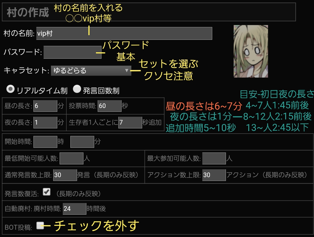 - 人が減った深夜に村立ての練習をするとよい