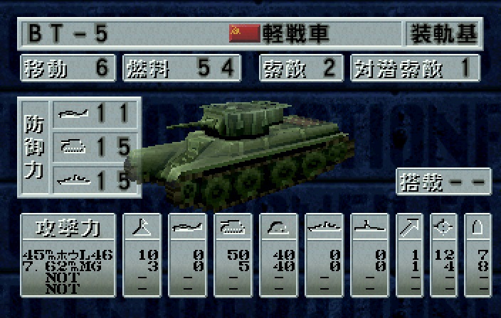 移動力 | 6(7) | 索敵範囲 | 2 |