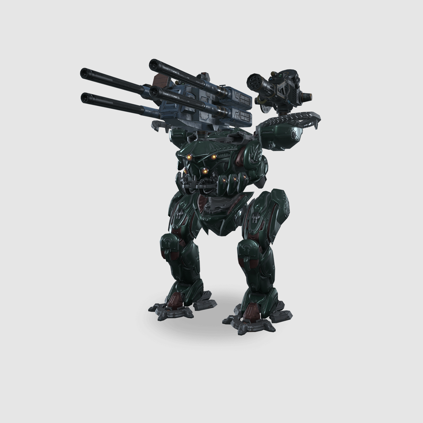 Atlasは、ティア4に分類される堅実なタイタン型の格闘機であり、1つのアルファと2つのベータ兵装スロットを持つ構成を備えている。耐久値、速度、火力はどれも中程度に位置するが、この機体を際立たせているのは両側面に常時展開されるアブソーバーシールドである。これらのシールドは戦闘中常に有効であり、被弾時にダメージの一部を吸収して自身の耐久値へと変換する特性を持つ。そのため、Atlasは安定した持久力を発揮し、戦闘が長引くほどに自己修復能力を活かした粘り強さを示す。