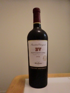 Beaulieu Vineyard(通称BV)は、カベルネ・ソーヴィニヨンだけでも色々なワインを造っているが、この"Rutherford"は、おそらくその中で安い方から数えて3番目のやつ(Coastal Estates → Napa Valley → Rutherford)。Costcoでは20ドルで売っていたが、ワイナリーから直接買うと32ドルする1本。