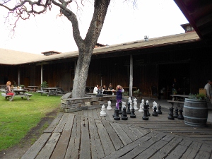 Zaca Mesaの庭にはピクニックテーブルもあったので、家から持参した食べ物でランチに。でかいチェスの駒も置いてあって、どこかのご家族が親子で対戦していた。